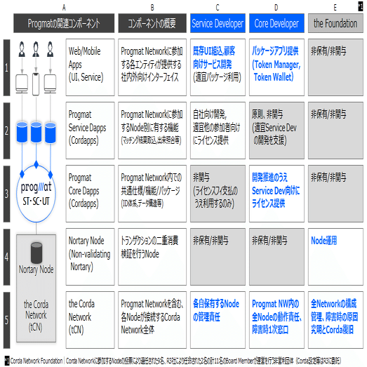 前提として、Progmatは「the Corda Network(tCN)」を利用することから、ネットワーク構成管理やNortary Node運用は非営利団体である「Corda Network Foundation(the Foundation)」が行うため、「Core Dev」への集権が不要となります。