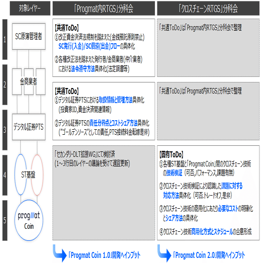 「クロスチェーンRTGS」分科会は、「Progmat Coin2.0(オープン化、クロスチェーン対応)」開発開始までに、各種合意形成を完了し、2.0の開発へ要件等をインプットすることを目的に設置します。