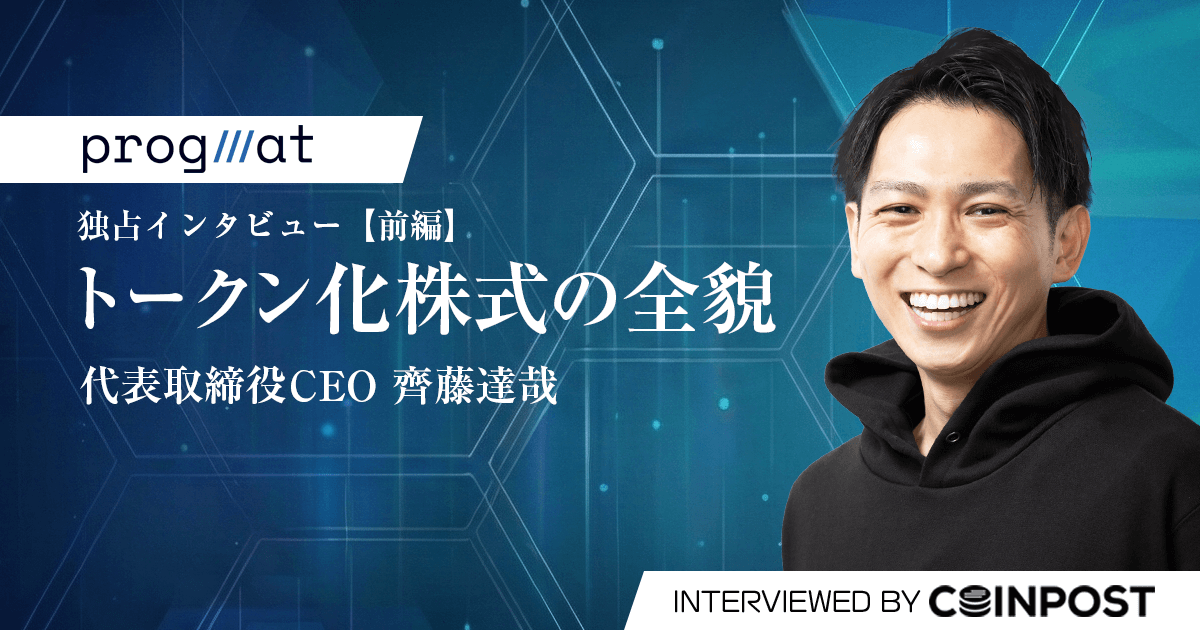 News Progmat home / News すべての記事 2025年の記事 2024年の記事 2023年の記事 2022年の記事 2021年の記事 2020年の記事 2019年の記事 日本経済新聞社「デジタル証券フォーラム2025」に登壇しました。 2025.12.02 CoinPost「DeFiで株式市場はどう変わる? Progmat齊藤達哉氏が語るオンチェーン金融の未来|独占インタビュー【後編】」に掲載されました。 2025.11.30 CoinPost「24時間・1円から取引可能に Progmat齊藤達哉氏が語る「トークン化株式」の全貌|独占インタビュー【前編】」に掲載されました。 2025.11.29 SMBC日興証券「SMBC Nikko Expert Seminar」 に登壇しました。 2025.11.26 日本セキュリティトークン協会「トークン化株式の最新動向 – 日本でも株式をトークン化できるのか?」に登壇しました。 2025.11.26 Diamond Hands「Web3事業者のためのビットコイン勉強会」に登壇しました。 2025.11.21 N.Avenue club ラウンドテーブル「2026年に見えてくるステーブルコインの真価」に登壇しました。 2025.11.19 GFTN「Singapore Fintech Festival」に登壇しました。 2025.11.14 プレスリリース「ステーブルコインの正式認可を背景に、「通貨の新時代」をテーマとした金融カンファレンス「MoneyX(マネーエックス)」開催決定」 2025.11.10